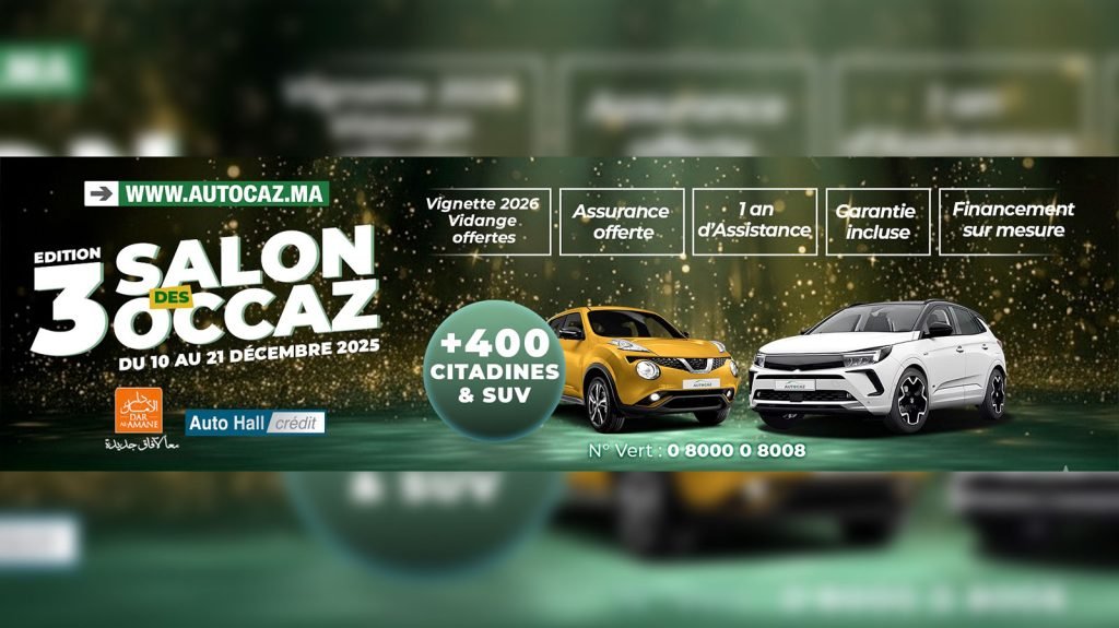 Ainsi et selon Autocaz, il est question d’un financement sur mesure (mensualités flexibles, durées ajustables….) ; d’une assurance de 6 mois offerte (pour tout achat) ; des vignette 2026 et 1ère vidange offertes ; de la reprise multimarque (avec un cotation juste) ; d’une garantie ; ainsi que d’une série de solutions complètes proposées via des partenaires de confiance comme Auto Hall Crédit (financement), Dar Al Amane (financement participatif) et Automobility Service (assurance). Tout cela sur quelques 700 véhicules, incluant plus de 400 citadines et SUV, disponibles en stock et visibles sur la plateforme Autocaz.ma.