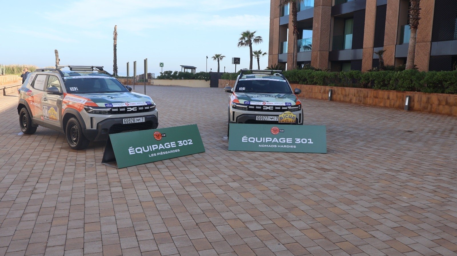 Ceux des équipages «301» et «302», baptisés respectivement «Nomads Hardies» et «Les Pièssardes» ont été présentés à la presse, en présences de leurs gazelles. Il s’agit de Mmes HindLafdel et Nelly Harraf (301) et Sara Boumalik et SihameGoumairi (302) qui sont des collaboratrices de la filiale marocaine du groupe au losange. Sélectionnées à l’issue d’un appel à candidatures interne, elles ont bénéficié de tout un accompagnement (formations, équipements), pour relever ce défi dans les meilleures conditions au volant des Dacia Duster 4×4.