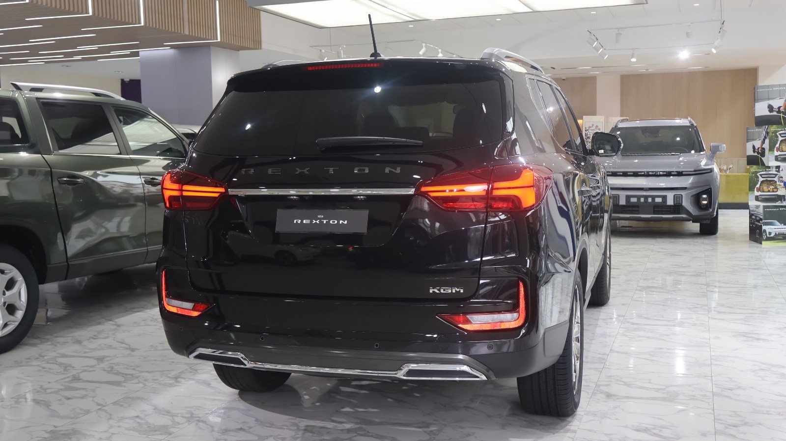 Difficile de ne pas être séduit par le gabarit de ce colosse coréen. On apprécie les chromes qui habillent généreusement son immense calandre, l’encadrement du vitrage latéral et ses grandes roues de 20 pouces. L’arrière se pare lui aussi de chrome à travers une barre qui sépare les blocs de feux qui traversent le hayon. Ce dernier, reçoit une ouverture motorisée et abrite un vaste coffre dont le volume dépend de la configuration. Car, profitant de ses 4,85 mètres de long, le Rexton intègre d’office une troisième rangée de sièges. Du coup, il affiche 236 litres en configuration 7 places et atteint 784 l en 5 places !